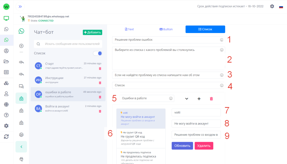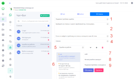 Стоимость WhatsApp рассылки и создание чат ботов входит в один тариф.