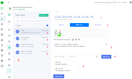 Создайте чат бота или рассылку в whatsapp с кнопками бесплатно, 100 сообщений будет доступна после регистрации в сервисе